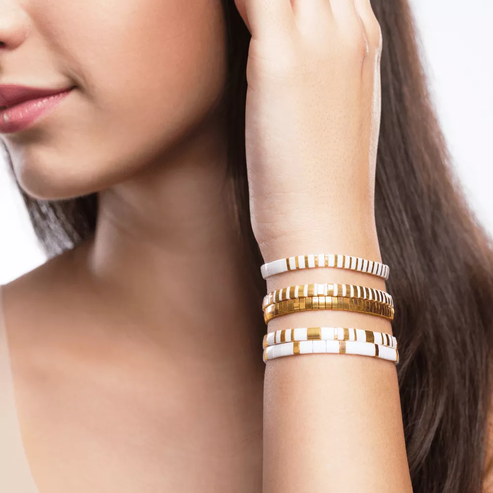 Početna Miyuki Miyuki narukvice Essential belo zlatna narukvica 1